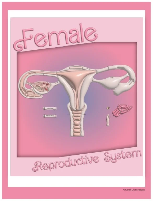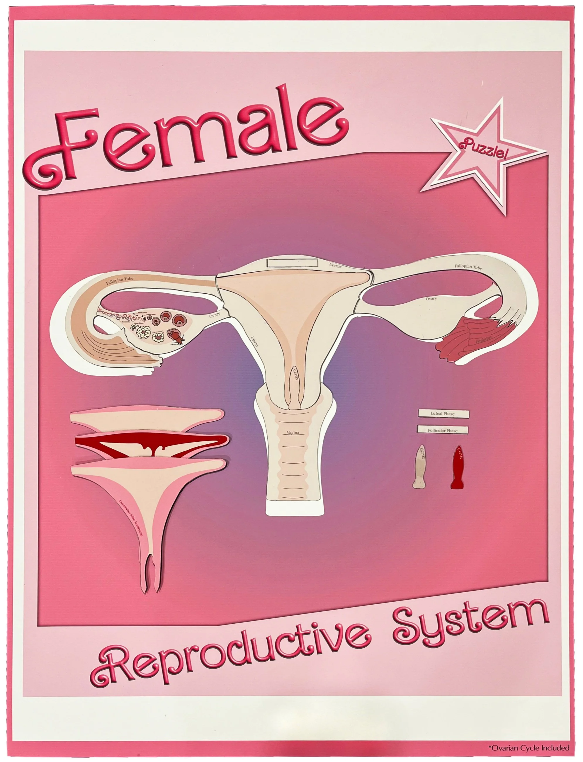 This project features an interactive magnetic poster with puzzle pieces of the female reproductive system, designed to be both educational and engaging. The poster serves as a hands-on learning tool, paired with a deck of cards that explains the primary functions of each part of the female reproductive system. Interchangeable pieces of the endometrium layers illustrate changes during the menstrual cycle, helping users understand how their bodies—and those around them—function.